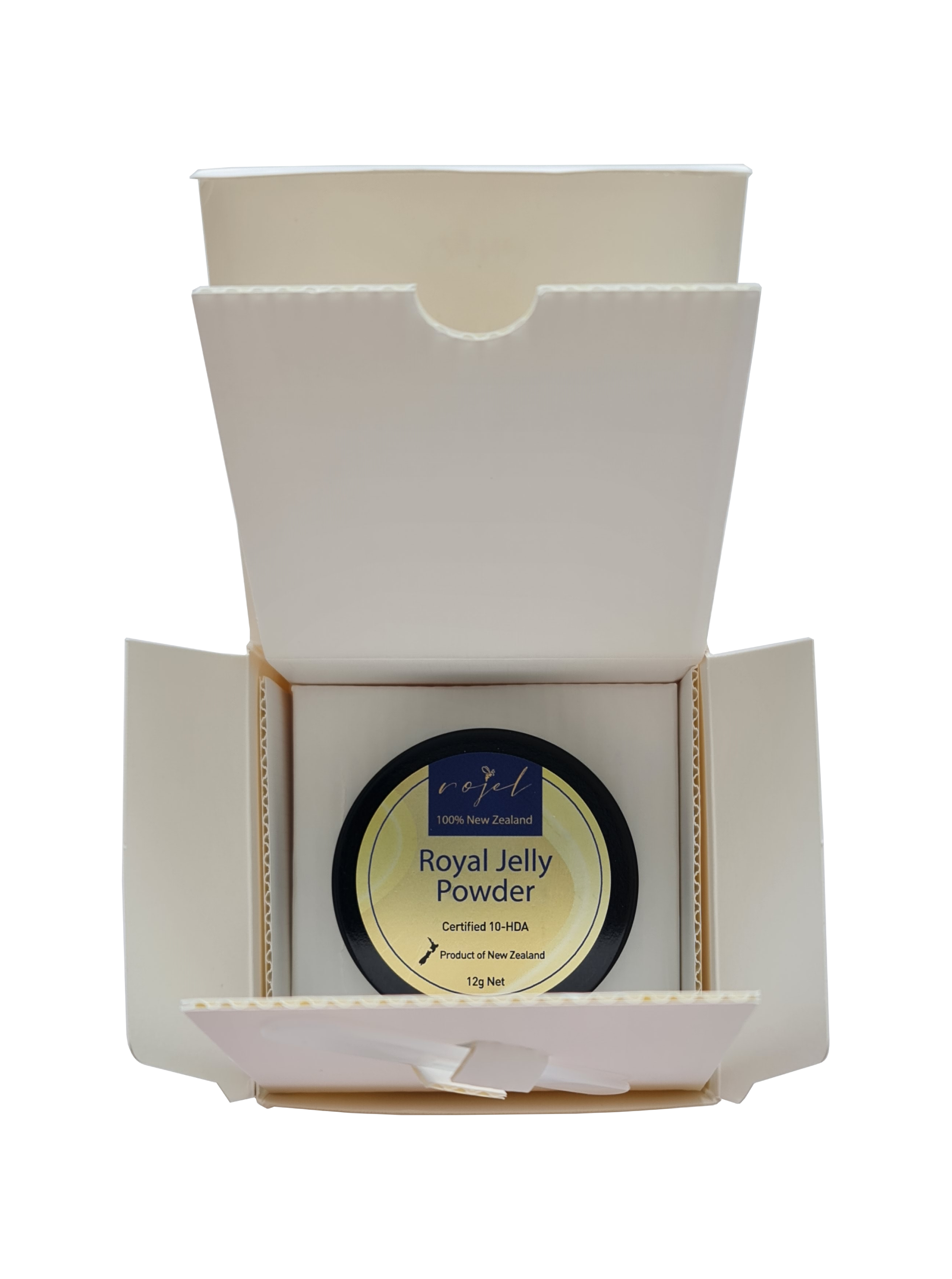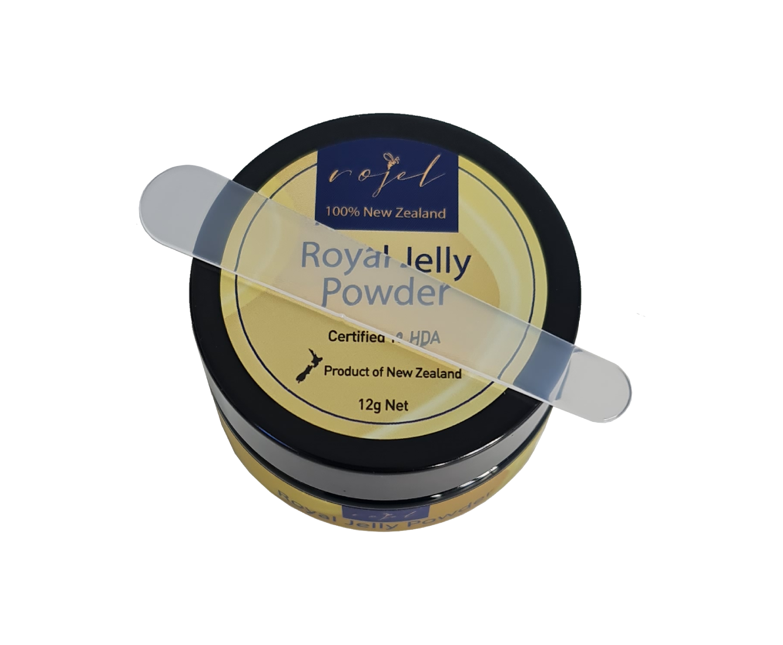 Unlike most royal jelly powders, which are produced in China and mixed with soybean oil or powder to increase volume, Rojel's powder is made exclusively from our own fresh royal jelly — harvested from apiaries in North Auckland and freeze-dried in-house using a pharmaceutical-grade lyophilizer. Every single grain is pure 100% royal jelly.